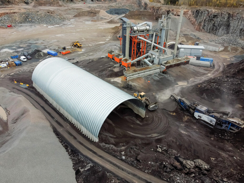 GRK tarvitsi Nurmijärven asfalttiasemalle ratkaisun, joka mahdollistaa kierrätysmateriaalin eli asfalttirouheen ympäristöluvan edellyttämän katetun varastoinnin. Rouhe oli saatava katon alle nopeasti ja kustannustehokkaasti, jotta varastointi täyttäisi lupavaatimukset ja päivittäinen toiminta voisi jatkua ilman keskeytyksiä.